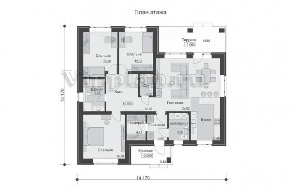 | Размеры дома: | 13.17м×14.17м |